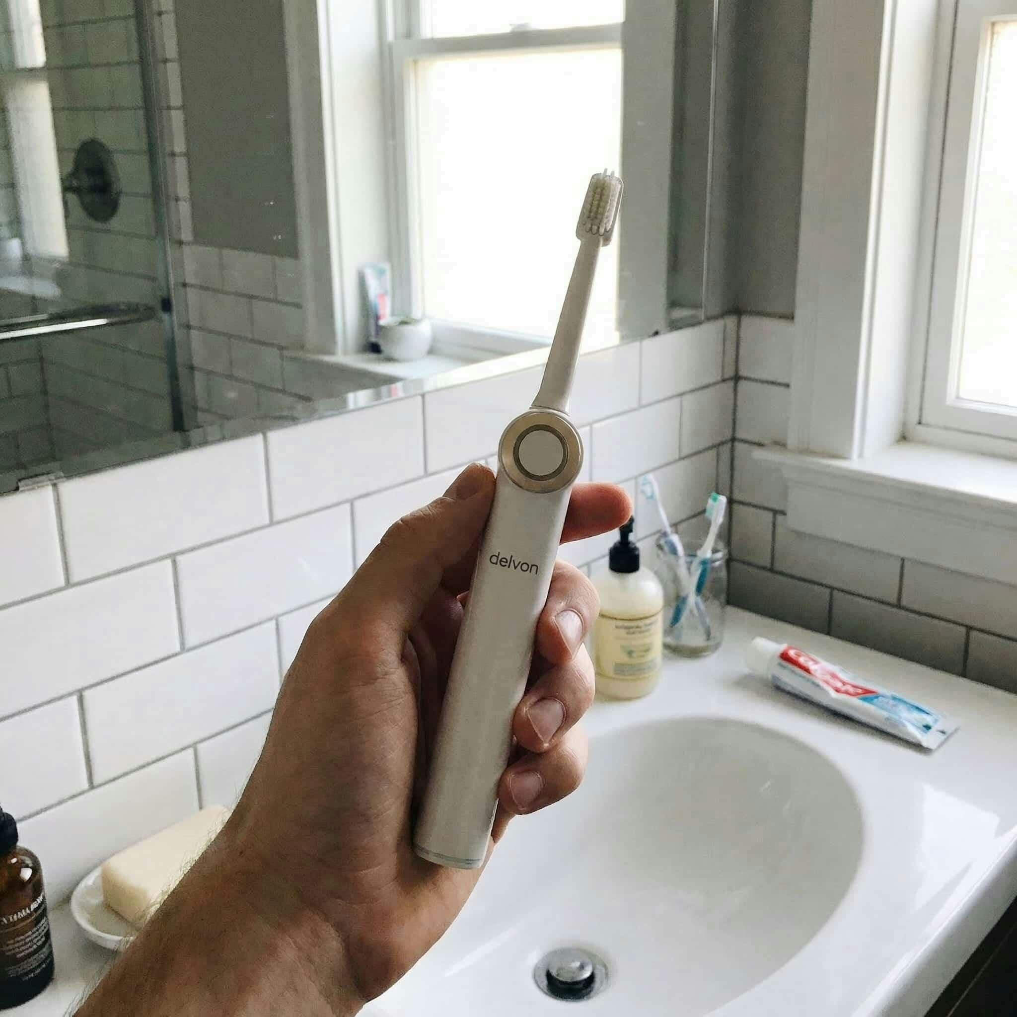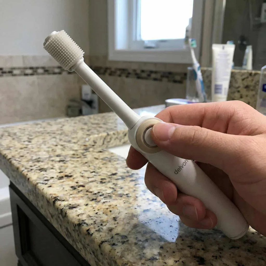 It’s electric with a 360° bidirectional rotating mechanism that cleans all sides of the tooth as it moves. No scrubbing motion from your hand is needed.